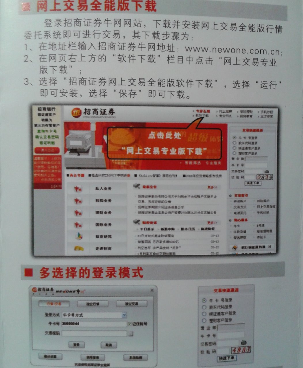 * 招商牛网网址(网上交易全能版下载): www.newone.com.cn 。
